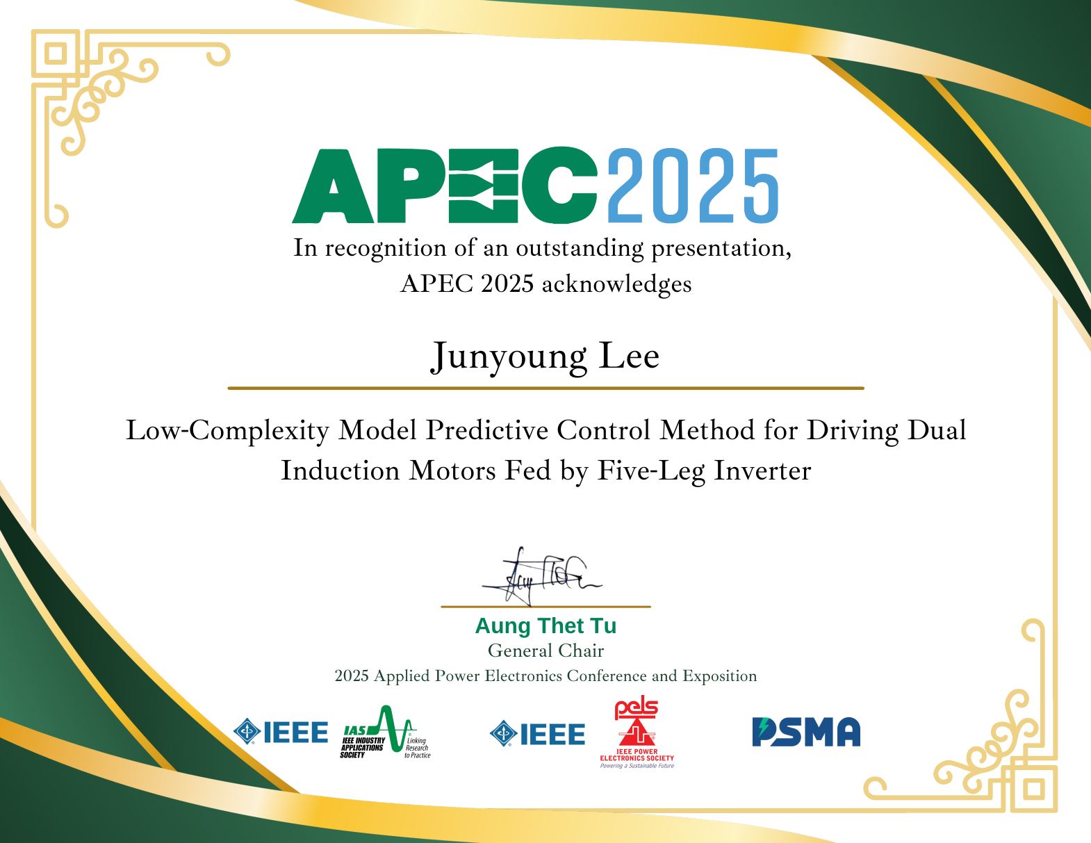 이준영 석사과정, APEC2025 Best TS Award 수상
