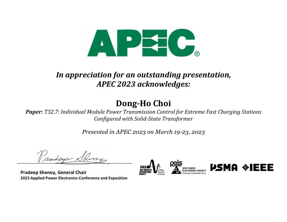 최동호 박사과정, APEC2023 Best Presentation Award 수상